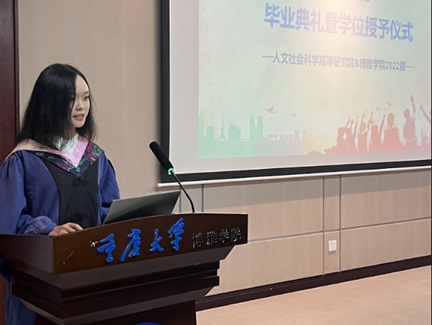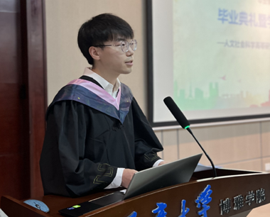 四年的学习,收获了探索与思辨的智慧、自由而卓越的灵魂以及博雅本身。无论走向何方,博雅学子始终不忘本心、永远热爱、坚定追求、勇敢实践。研究生毕业生代表罗立健也深情感恩母校,并号召全体毕业生以奋发有为的姿态,怀揣重大人的初心和梦想,以最饱满的状态奔赴自己的未来岗位。姚飞院长代表学院向毕业生寄语,希望同学们坚持理想,不忘初心;独立思考,追求真理;自信自强,攻坚克难。