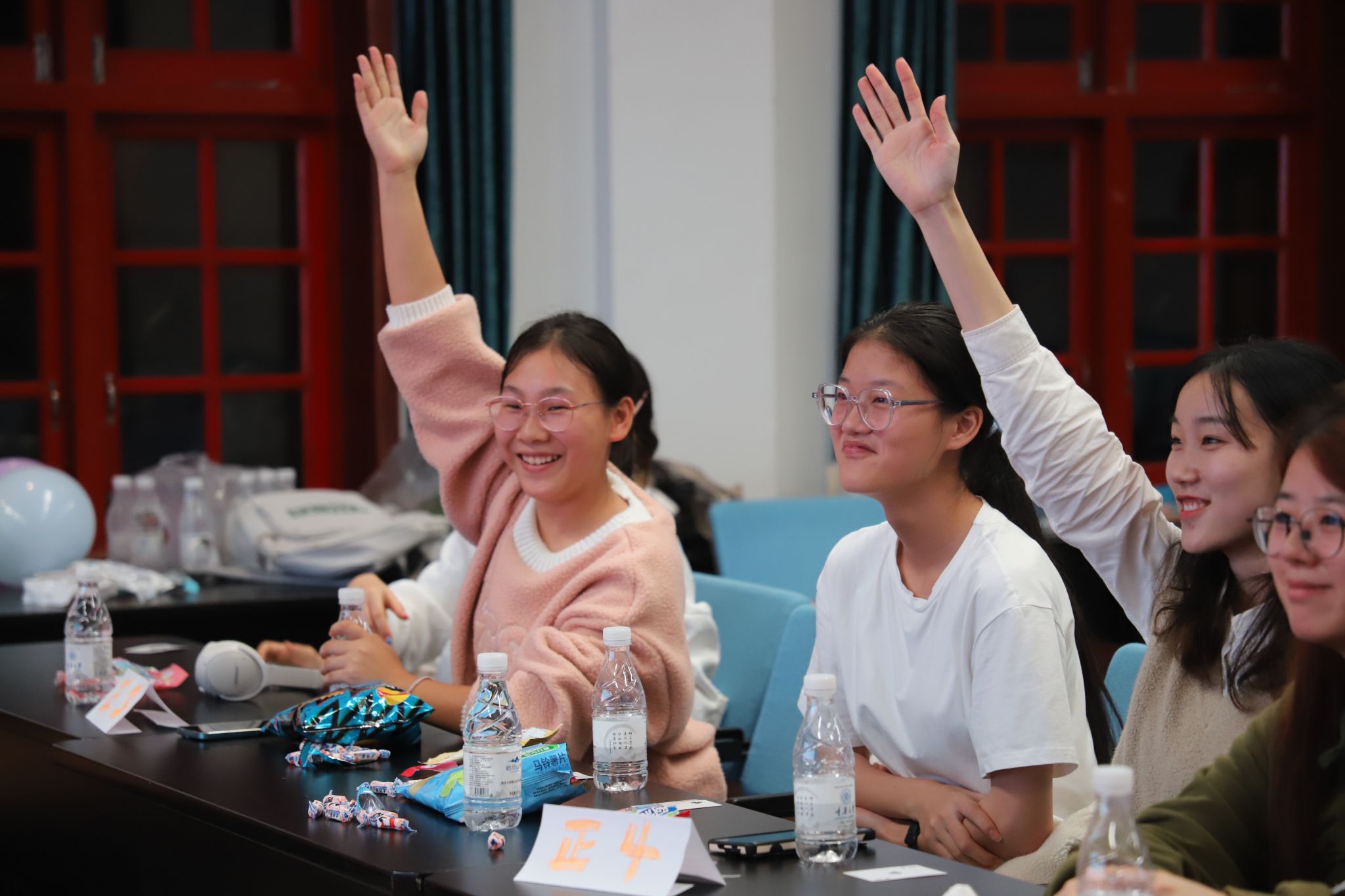 随后,党史知识竞答、保卫球球等团队拓展活动相继进行,同学们相互配合,发挥团队协作精神,不怕艰难,出色地完成了一个又一个活动任务。游戏之后,还设置了经验交流环节,针对团干部任职期间会碰到的难题,大家自发讲述想法和交流解决措施。活动形式动静结合,高潮迭起,各队队员团结协作,现场气氛温馨和谐,充分展现了御书屋