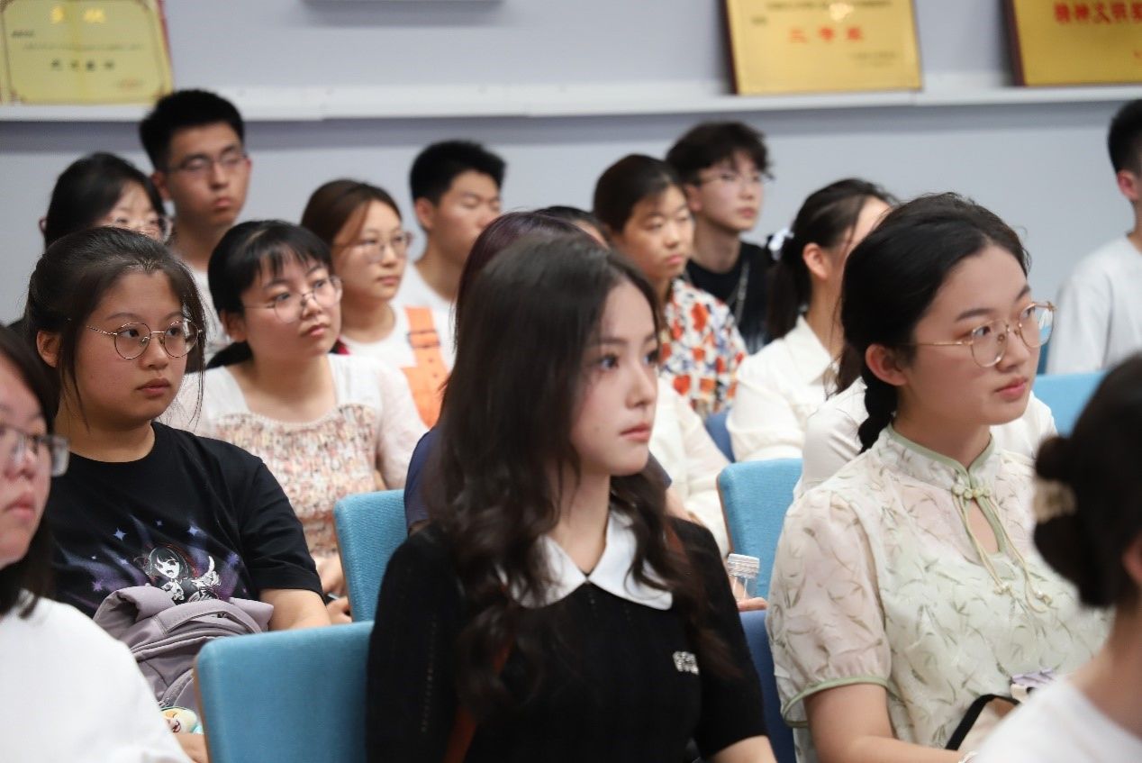 高宏佳从三个层面向新生们介绍了大学生活的方式方法与处事原则。第一个层面,她着重强调“安全”一词,表示安全是最低要求也是最高要求,并提醒同学们谨防诈骗;第二个层面,她关注“自我”一词,结合自身的人生经历,提示同学们应当学会个人身份、思维方式、空间位置上三个维度的转变与调整;第三个层面,她寄托对于同学们的热切期待,希望他们将个人梦与中国梦融合发展,不拘泥于专业,不拘泥于形式,做好一个方面,“有一份热,发一份光”,在属于自己的位置上闪闪发光。