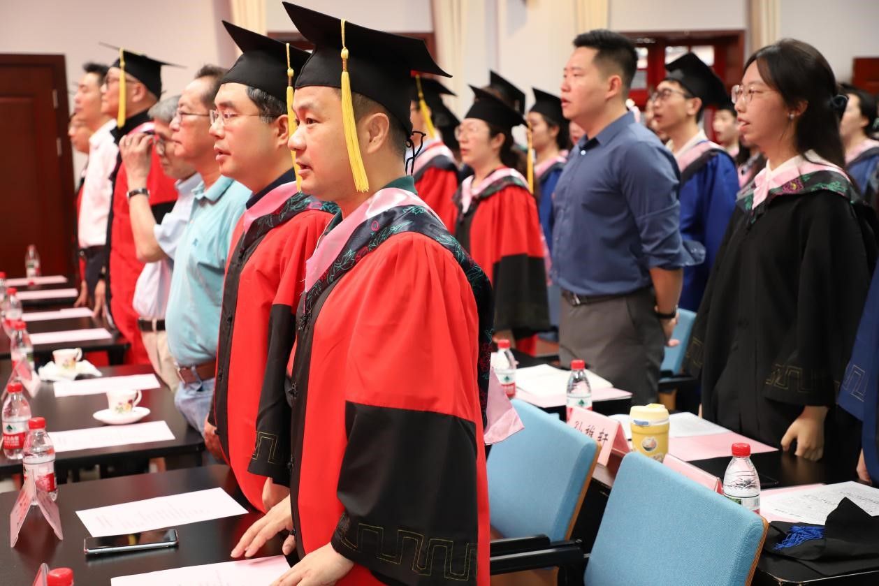 典礼中,孙江林书记宣读了2025届优秀学位论文及优秀毕业生获奖名单,并鼓励同学们在未来的人生旅程中持续追求卓越。随后,学位授予仪式将典礼推向高潮,毕业生身着学位服,依次上台接受学位委员们的拨穗和祝福。