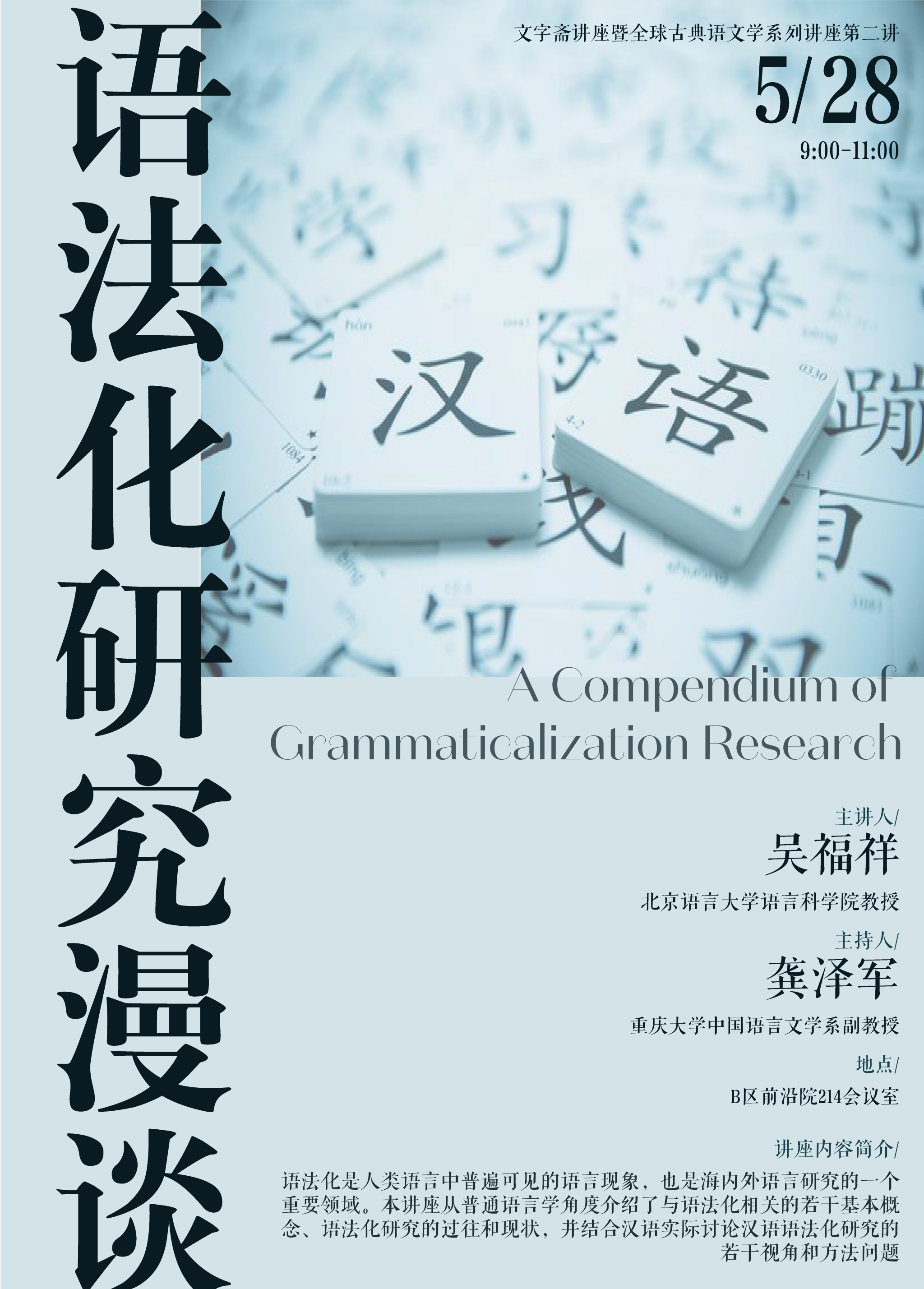 语法化是人类语言中普遍可见的语言现象,也是海内外语言研究的一个重要领域。本讲座从普通语言学角度介绍了与语法化相关的若干基本概念、语法化研究的过往和现状,并结合汉语实际讨论汉语语法化研究的若干视角和方法问题。
