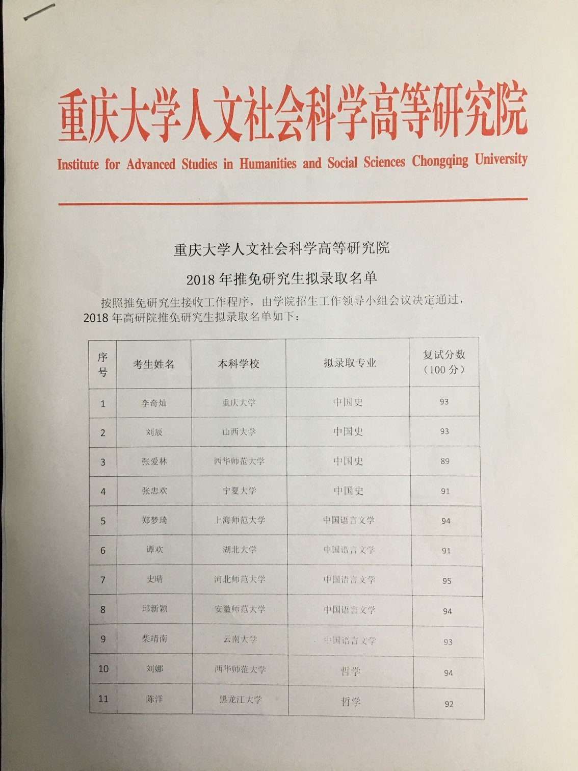 御书屋 御书屋 2018年推免研究生拟录取名单公示