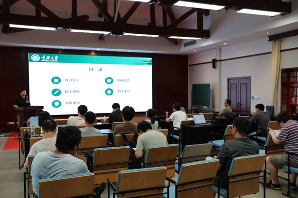 接下来,肖馨瑶副主任对近期教学工作情况进行了汇报,强调今年研究生推免工作的变化,并通报了本、硕、博学生的培养进度以及本、硕应届生目前的就业情况。此外,肖馨瑶老师还谈及了研究生培养方案修订的问题,指出平台基础课的组建需要不同集群老师进一步商定。