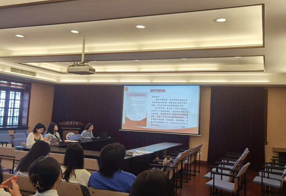 研究生二支部于文字斋报告厅召开组织生活会,学习贯彻习近平总书记给中国冰雪健儿重要回信精神,参会人员为御书屋