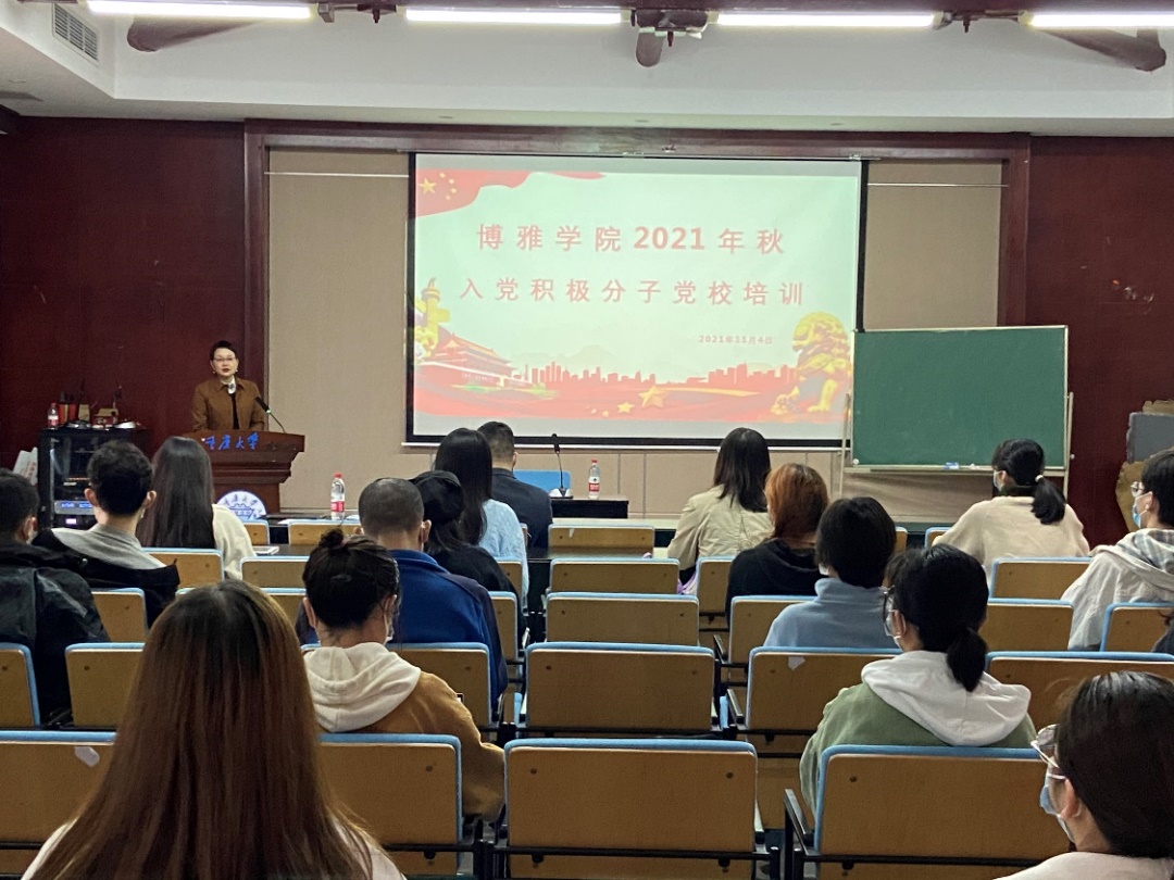 党委组织员刘念主持,学院党委书记曾佐伶、学院教师党员钟融冰和朱学博、校党委组织部组织员杨聪林及20多名入党积极分子参加了培训。