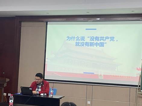 在“学党史”主题学习中,朱学博以“为什么说没有共产党就没有新中国”为主题向大家讲解了中国共产党波澜壮阔的历史。他首先介绍了抗日战争胜利后的时局,解释两种命运、两个前途斗争的历史必然性,之后揭示了国民党政权的反动本质及其所面临的全面危机,让大家认识到这一政权遭到广大人民反对并迅速走向崩溃的根本原因。再从“第三条道路”幻想破灭的必然性出发,解释了中华人民共和国的创建和共产党执政地位的确立是历史和人民的选择,最后讲解了中国新民主主义革命胜利的原因和基本经验,让大家深刻理解“没有共产党就没有新中国”的真理。