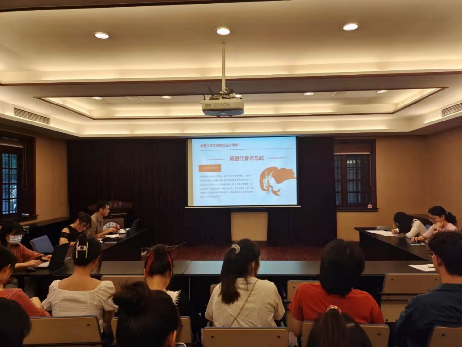 姚富耀从“新时代青年学生要树立远大理想”“新时代青年要热爱伟大祖国”“新时代青年要担当时代责任”“新时代青年要勇于砥砺奋斗”“新时代青年要练就过硬本领”等五个方面带领支部同志集体学习了习近平总书记关于当代青年的重要论述。姚富耀指出,当代青年的理想信念关乎国家未来,青年理想远大、信念坚定,是一个国家、一个民族无坚不摧的前进动力。新时代青年要树立对马克思主义的信仰、对中国特色社会主义的信念、对中华民族伟大复兴中国梦的信心,从党史学习中激发信仰、获得启发、汲取力量,不断坚定“四个自信”, 树立为祖国为人民永久奋斗、赤诚奉献的坚定理想。对新时代中国青年来说,热爱祖国是立身之本、成才之基。因此,我们要了解中华民族历史,传承中华文化基因,树立民族自豪感和文化自信心。如今中国民族正面临百年未有之大变局,中国青年要敢于勇挑时代重担、勇克时代难关、勇斗时代风险,砥砺奋斗,练就过硬本领,为实现中华民族的伟大复兴贡献自己的一份力量。