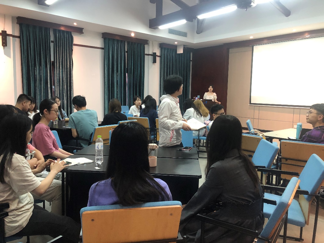 党委委员袁敏老师对本次新颖的学习形式表示了充分肯定,同时提出了一些意见与建议。她指出,“文似看山不喜平”,通过高参与度的游戏和生动的情境演绎激发成员的学习兴趣,有助于打破“学文件”的刻板模式,从而进一步优化学习体验与成果。袁敏认为,工匠精神是一种攻坚克难、精益求精的精神。她从自己的工作经验出发,以当下毕业答辩论文中标点符号的错误使用为例,指出除了要把握宏观内容,更要关注具体细节,保持严谨的科学态度和精益求精的实践精神。