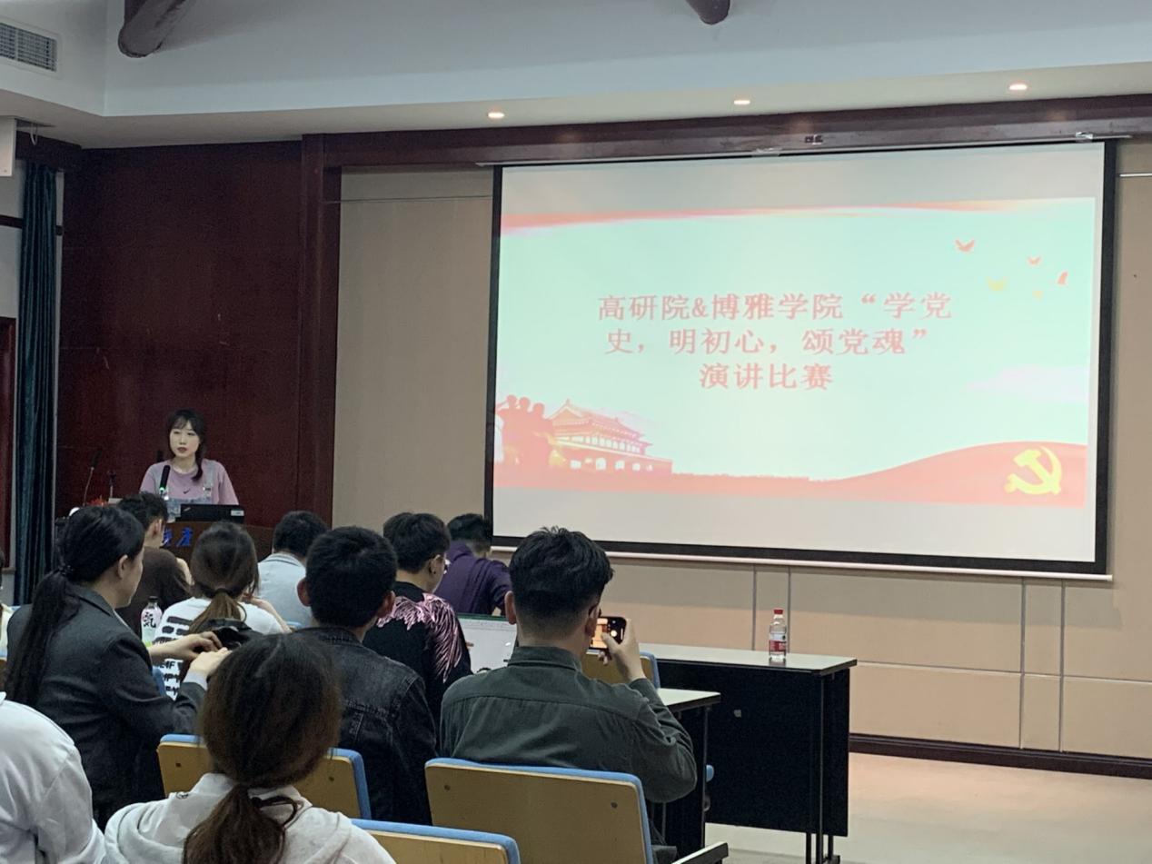 “学党史、明初心、颂党魂”演讲比赛在博雅小院报告厅举行。学院党委副书记胡佳,教师董涛、宋玉,学生办公室主任郑家勤和本科生辅导员高宏佳出席本次活动并担任评委。