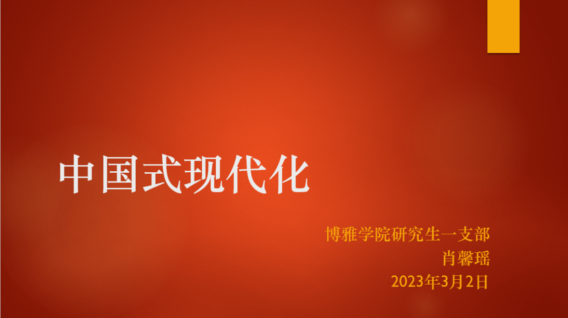 研究生一支部书记肖馨瑶以“中国式现代化”为题,为支部全体党员和入党积极分子上了一次生动的党课。