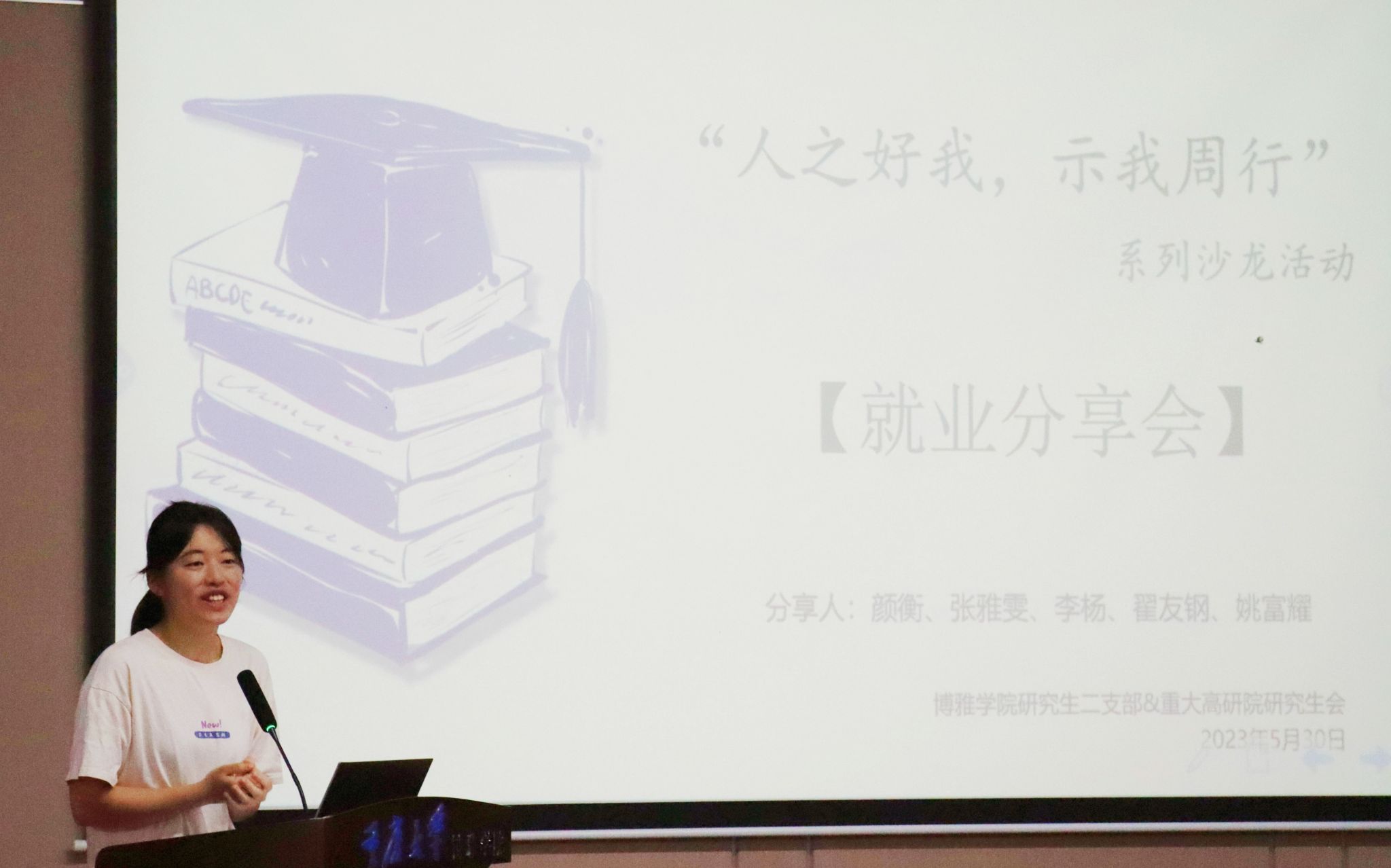 报告厅组织了就业分享交流会。颜衡、张雅雯、李杨、翟友刚和姚富耀五位同志结合自身经验,从明确目标、收集招聘信息、备考资料分享、备考时间安排以及实习经历等五个方面分享了参加选调生和公务员考试、备考教师编和申请博士的宝贵经验。本次就业分享会促进了高低年级之间的就业信息流通,有助于低年级同志吸收优秀的求职和申博经验,明确就业方向,“打有准备的仗”。