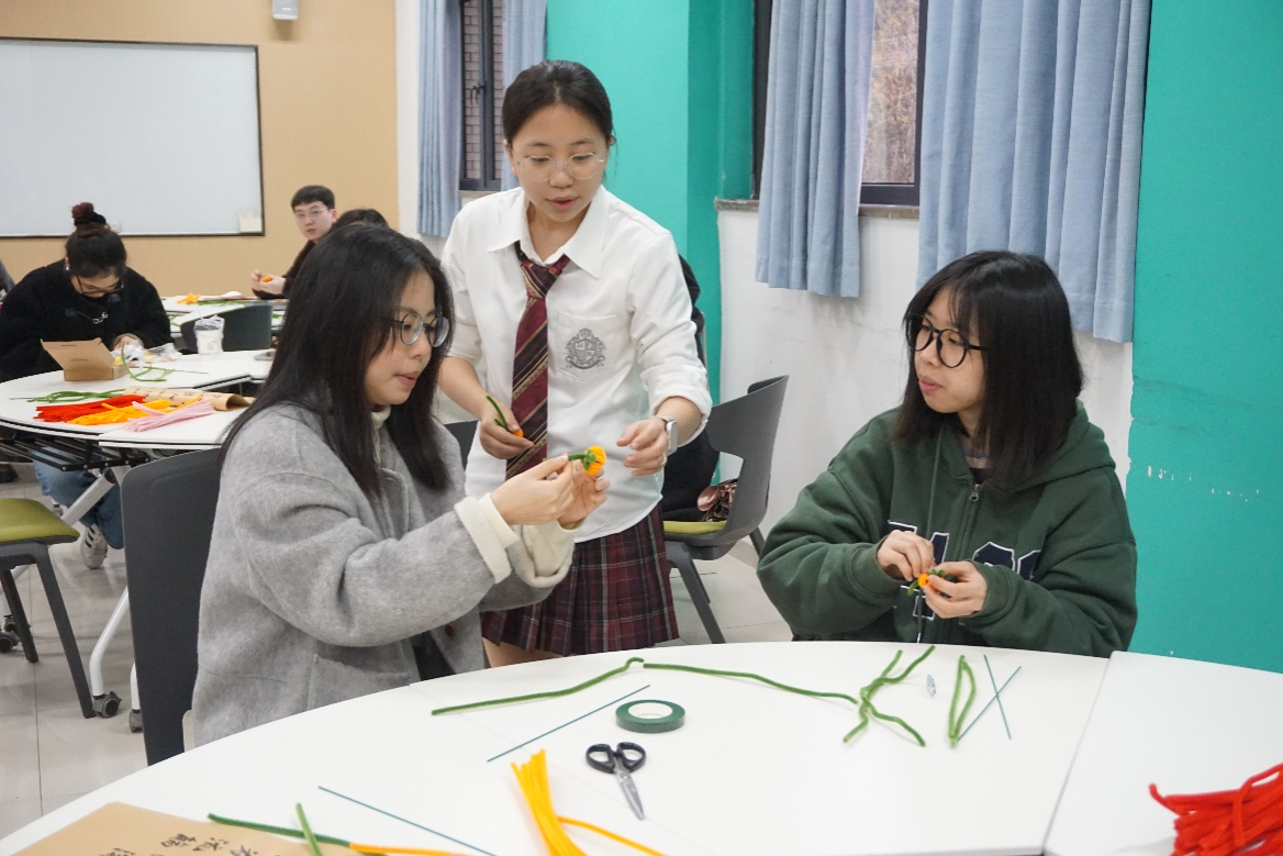 最后,活动进入了温馨的手作玫瑰环节。在王会娟同志的耐心指导与帮助下,同学们完成了象征“丰收喜悦”的柿子花制作和玫瑰捧花。大家将理论学习成果转化为创作灵感,相互交流、相互学习、相互进步,增进了彼此之间的友谊和团队凝聚力。