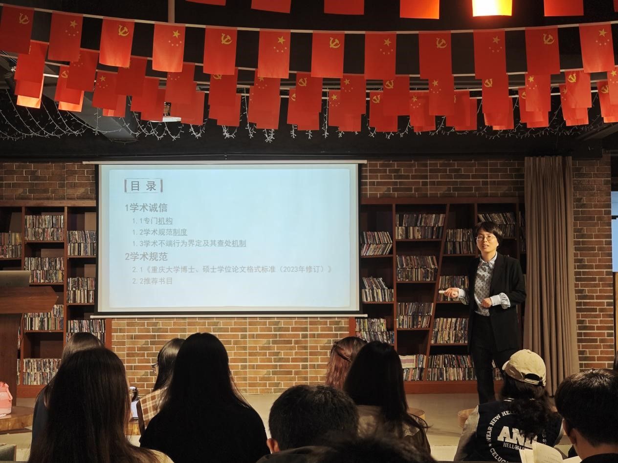 守学术规范,夯诚信基石。为帮助新入学的同学们熟悉和掌握学术论文写作中的科学道德准则与具体要求规范,从而强化科研诚信建设、建设务实严谨学风,2023年10月26日16:30,高研院2023级研究生新生学术诚信与学术规范讲座于A区声音图书馆内顺利举行。本次讲座由中文系袁敏副教授作专题报告,2023级全体新生到场参与。