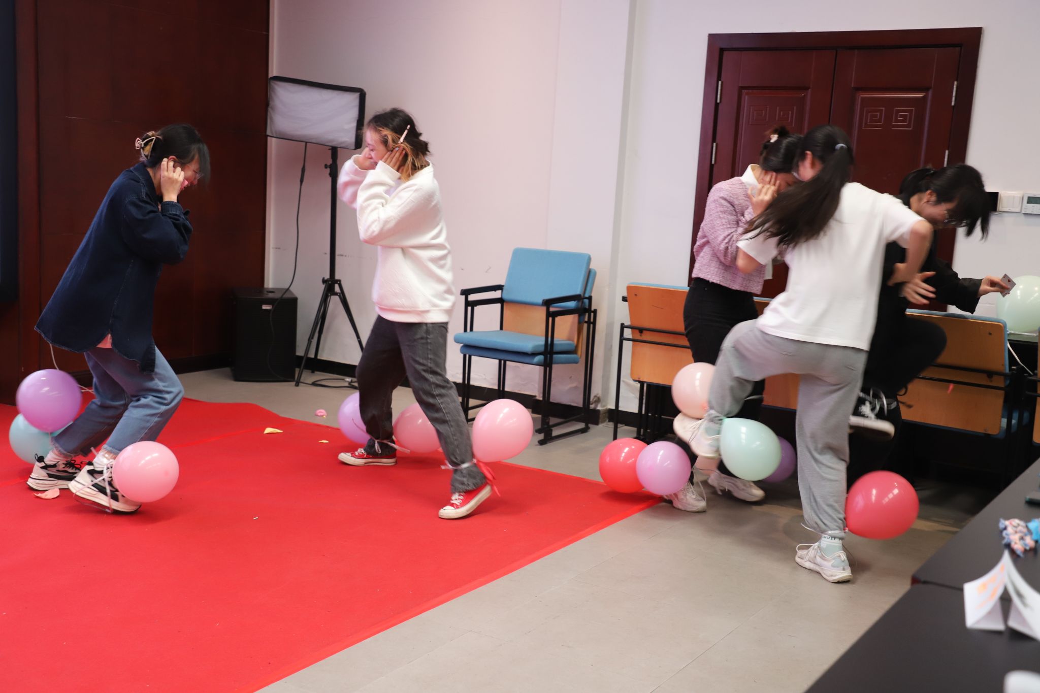 随后,党史知识竞答、保卫球球等团队拓展活动相继进行,同学们相互配合,发挥团队协作精神,不怕艰难,出色地完成了一个又一个活动任务。游戏之后,还设置了经验交流环节,针对团干部任职期间会碰到的难题,大家自发讲述想法和交流解决措施。活动形式动静结合,高潮迭起,各队队员团结协作,现场气氛温馨和谐,充分展现了御书屋