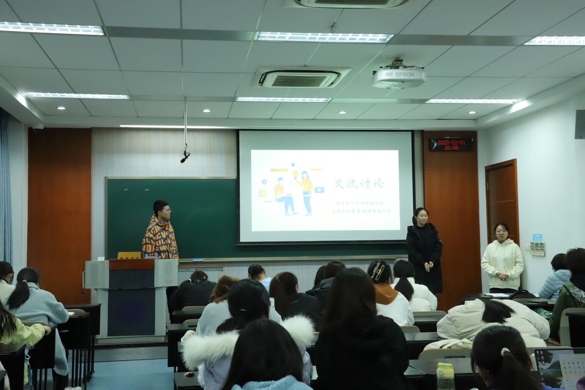 学生会学习部举办的“新老生经验交流会”在A8309举办。本次会议由2023级姚荣增主持,同时邀请了2020级边雨柯、2022级毛一诺和汪佳敏三位经验丰富、成绩优异的学姐为2023级的同学分享学习技巧与经验。