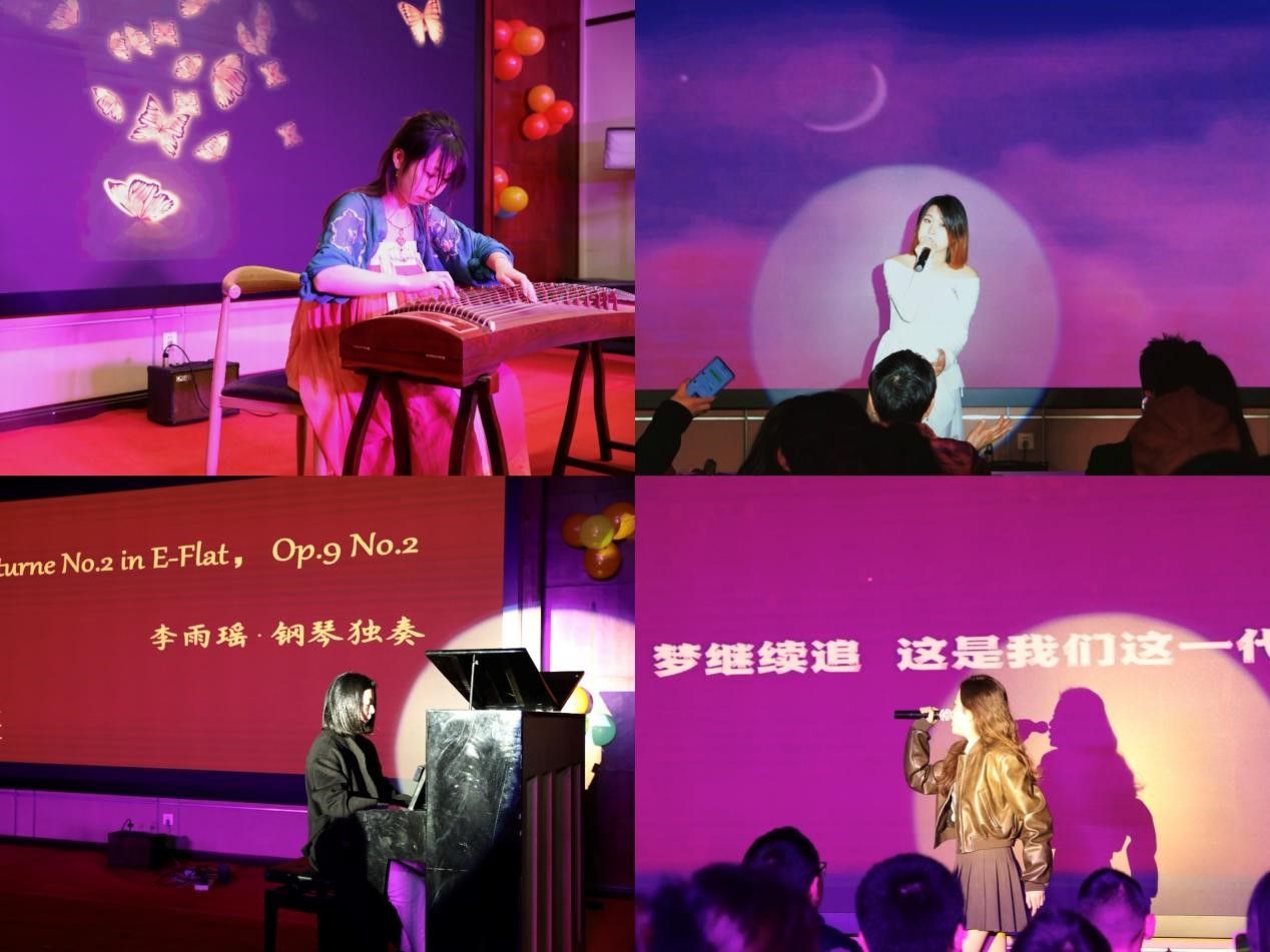 彭咏楠、杨羽澄带来的开场舞蹈《Perfect Night》点燃了现场气氛;程可苒的歌曲《闹哄哄》表现保持热爱、奔赴未来的勇气;吴彦成演唱粤语歌曲《K歌之王》,刘明浩献上一曲《天外来物》,展现情绪歌曲的魅力;孙一的《Untitled World》和徐樊的《Secret Touch》则以全新的语言风格为节目表演增添了别样的生机与活力;孟妙炯的舞蹈《J》与裴尹一菲的说唱节目《一代》活跃了现场氛围,点燃了观众激情;哲学系老师李雨瑶与中文系老师吴娇分别带来钢琴曲《Nocturne No.2 in E-Flat, Op.9 No.2》与《春江花月夜》,为节目厅增添注入独特魅力;戴程慧的古筝曲《万蝶振翅》与江南帅的吉他独奏曲《欢乐的游园会》再次展现博雅学子的多才多艺;最后中文系老师钟融冰一曲《海阔天空》带动全场大合唱。院内灯光渲染,观众掌声连连,现场气氛热烈,将本次活动推向高潮。