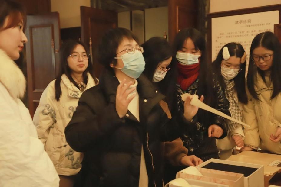 图书馆特藏部,聆听特藏部主任王彦力老师、中文系万曼璐老师和袁敏老师的古法手工纸现场观摩教学。以目见、耳闻、手摸、鼻嗅的方式,沉浸式体验古纸之美、古典之韵。