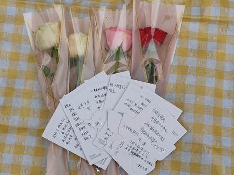 随后,冯婷邀请金雨萱和沈诗涵一起分发鲜花和明信片,传递花香,向各位女同学致以节日的问候与祝福,同时引导大家在第一张明信片上以书信形式写下关于妇女节的感悟,挂在准备好的小树上,互相阅览;第二张明信片则记录下同学们对山区儿童的温暖寄语或暖心插画,后续将进一步完成相应的邮寄工作。