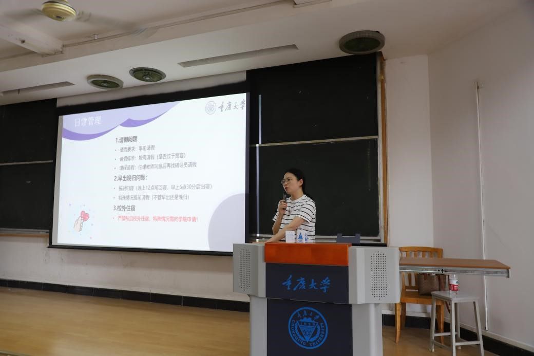 针对日常管理,高宏佳对请假要求与标准、早出晚归、校外住宿报备等问题进行了重点说明。强调要以“按需请假”为原则,进一步规范请假流程;此外,高宏佳特别强调严禁私自校外住宿,并提醒未按流程申请的校外住宿同学在规定时间内向学院提出申请。
