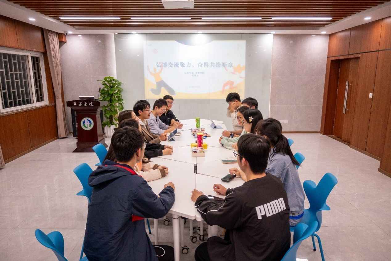 与弘深学院团委学生会的交流会在弘深书院101活动室顺利举行。本次会议由弘深学院团委学生会主席杨浩颖主持,两院学生干部积极参与。