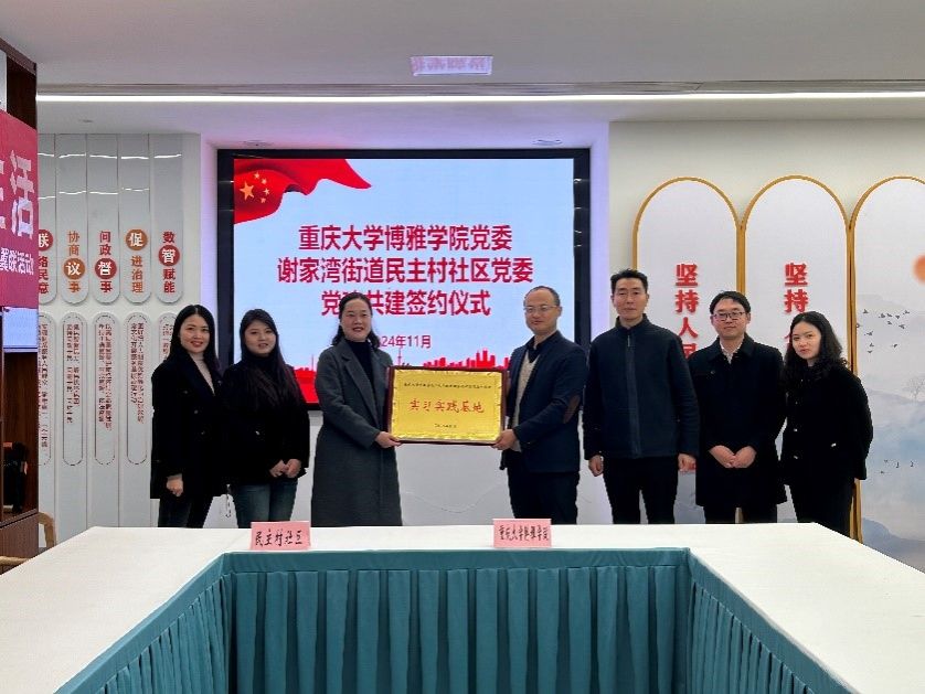 党委书记孙江林、副书记姜雪峰带队赴重庆市九龙坡区谢家湾街道民主村进行实地调研,并于11月29日与民主村社区党委正式签署合作协议,共同建立学生实习实践基地。民主村社区党委书记伍成莉、副书记潘超参加调研及签约活动。