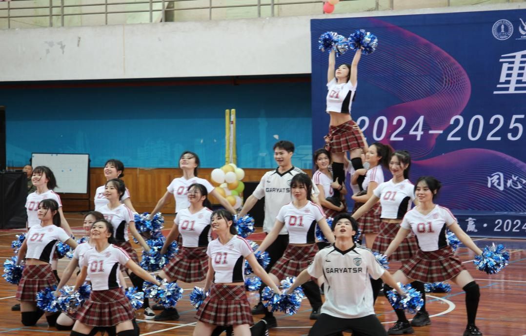 为深入贯彻落实党的二十大报告中"加快建设体育强国"的重要精神,营造健康向上、朝气蓬勃的校园体育文化氛围,2025年4月26日15时,“重大杯”2024-2025学年研究生啦啦操大赛在御书屋