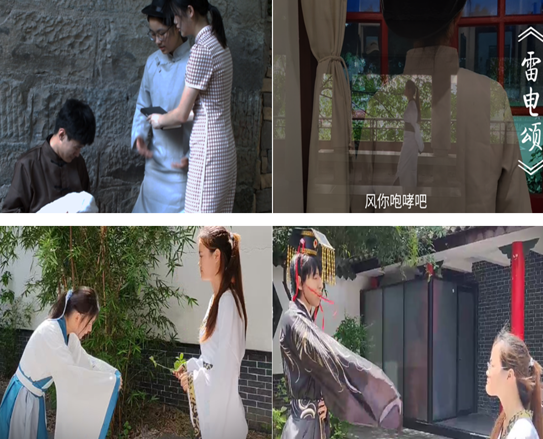 该团队改编创作了微视频《橘魂》。改编中,成员兼顾现代审美与历史内核,以《橘颂》和《雷电颂》为线索,串联起屈原、郭沫若与当代青年三个时空:从屈原“独立不迁”的品格,到郭沫若等文人以笔为枪的坚守,再到当代青年以创新实践传承爱国情怀,清晰勾勒出精神传承的脉络。拍摄中,成员们克服高温、场地协调等困难,在角色代入中愈发贴近当年创作者的汹涌爱国情,最终完成了高质量的作品。