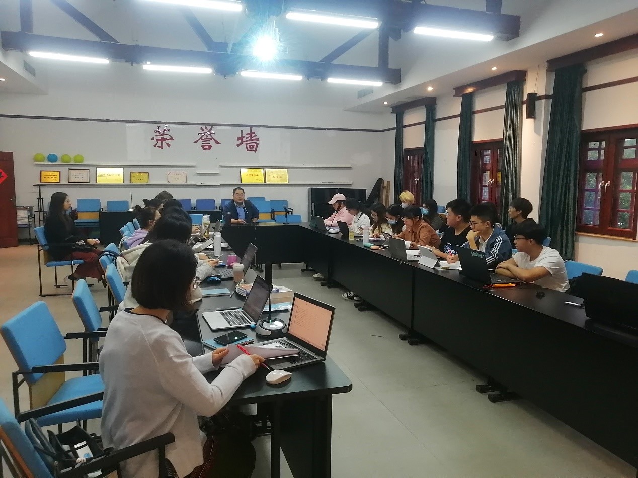 博雅小院报告厅和腾讯会议室的线上线下结合的讨论室中,参与师生近百人。