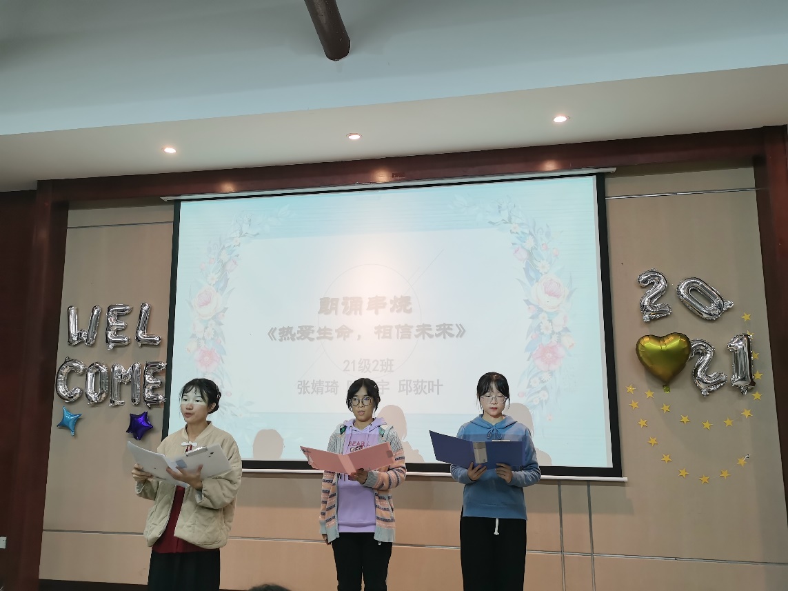 为促进新生与老生的交流,本次交流会采用抽签选座的方式,给同学们带来“拆盲盒”一样的新奇体验,又通过形式多样的节目将交流会现场气氛烘托得轻松而又愉悦。张婧琦、陆宁宇、邱荻叶带来的诗朗诵串烧《热爱生命,相信未来》,鼓励大家珍惜时光,感受生命的无限美好。曹淼和倪睿启带来的相声《成功先猜谜》通过谐音梗,把与同学们相关的大学生活进行呈现,引得现场笑声、掌声不断。乐器合奏《画心》,琴箫和鸣,空灵凄切,观众则屏息聆听,沉浸于歌曲描绘的那耐人寻味的爱情故事之中。歌曲、舞蹈、吉他弹唱、乐队演奏,一个接一个的节目让现场活动氛围不断升温。