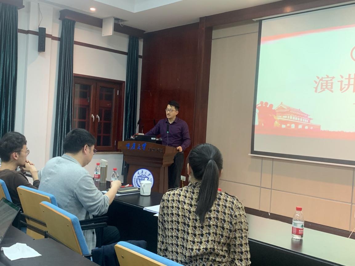 演讲比赛结束后,胡佳对本次活动进行了总结。他代表学院表示了对这次活动的高度重视,并强调了学党史对当代青年人的重要意义,他还借用御书屋