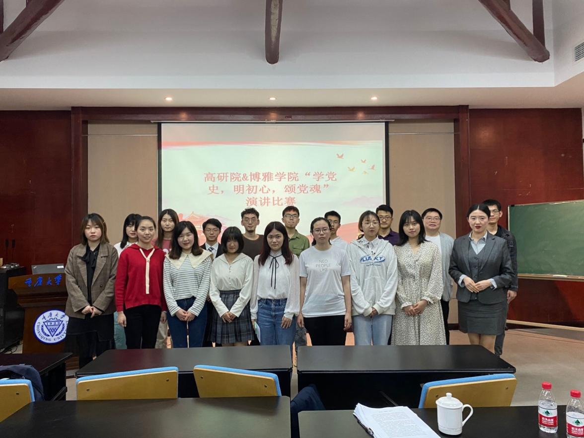 “学党史、明初心、颂党魂”演讲比赛在博雅小院报告厅举行。学院党委副书记胡佳,教师董涛、宋玉,学生办公室主任郑家勤和本科生辅导员高宏佳出席本次活动并担任评委。