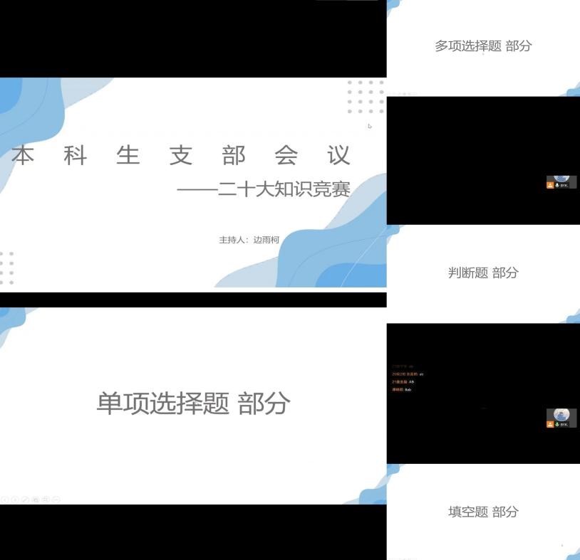 本科生支部开展学习二十大精神线上知识竞赛。本科生支部党员、发展对象、积极分子全体参与。