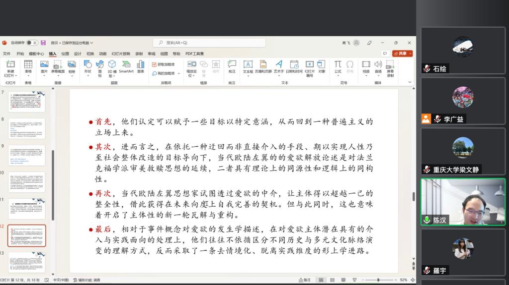批评理论与批评史研究中心师生在线上成功举办读书会,对王国维的境界说的建构、中西诗学观念对读等问题进行了深入研讨和交流。